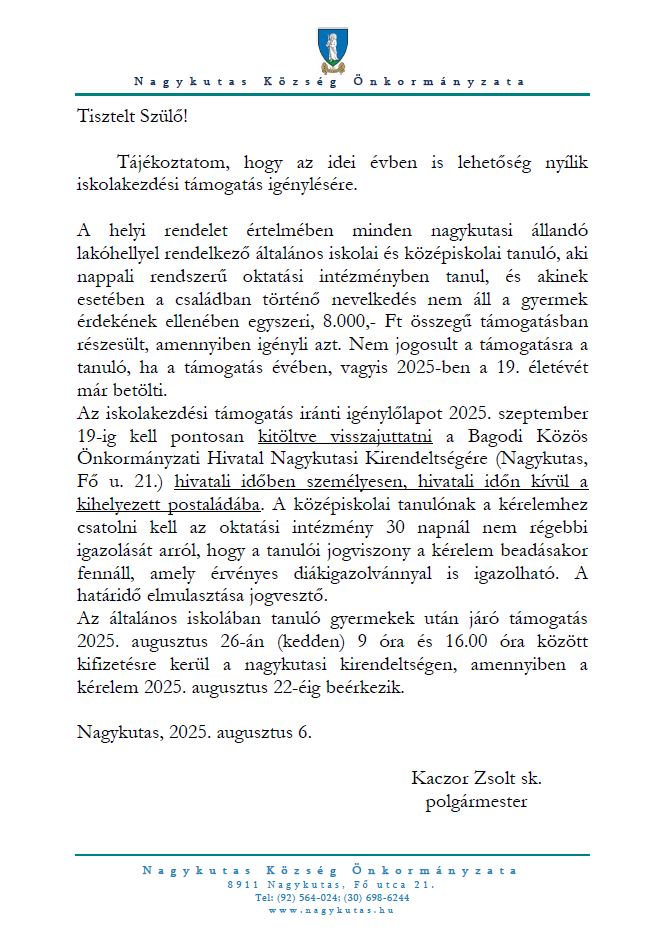 Iskolakezdési Támogatás 2025